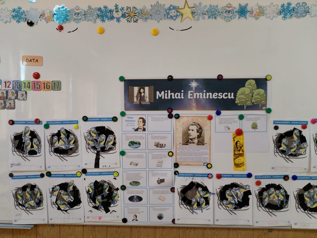 Activitatea dedicată Zilei lui Mihai Eminescu, coordonată de doamna profesor Dănilă Luminița, a avut ca scop omagierea marelui poet național și apropierea elevilor de valorile literaturii române. Prin recitări de poezii, momente de lectură și discuții despre viața și opera lui Eminescu, elevii au demonstrat interes, sensibilitate și creativitate. Activitatea s-a desfășurat într-o atmosferă plăcută, contribuind la cultivarea dragostei pentru cultură și identitate națională.